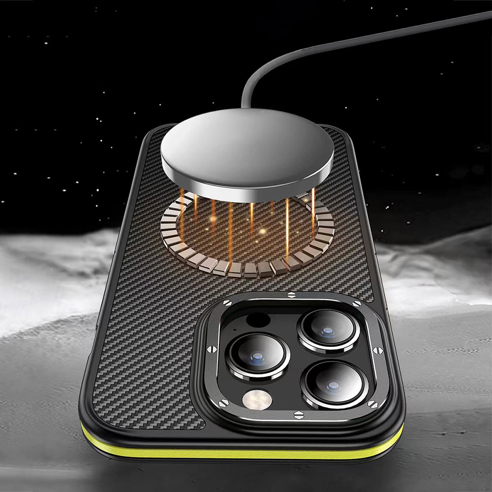 Apple iPhone 14 Pro Max Kılıf Magsafe Şarj Özellikli Karbon Fiber Görünümlü Wlons Marin Kapak