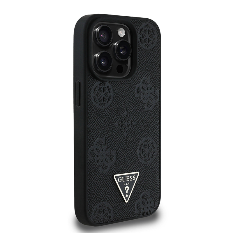 iPhone 14 Pro Max Kılıf Guess Orjinal Lisanslı Magsafe Şarj Özellikli Sıcak Baskılı Üçgen Logolu PU Deri Peony Kapak