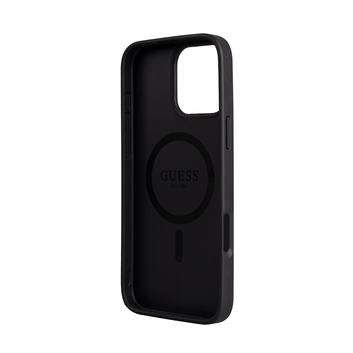 Apple iPhone 16 Pro Max Kılıf Guess Orjinal Lisanslı M-safe Şarj Özellikli 4G Metal Büyük Logolu Kartlıklı Kapak - 4