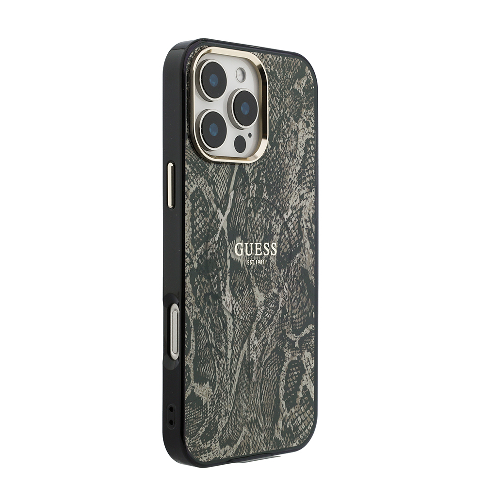 Apple iPhone 16 Pro Max Kılıf Guess Orjinal Lisanslı M-safe Şarj Özellikli Yazı Logolu Python Desenli Kapak