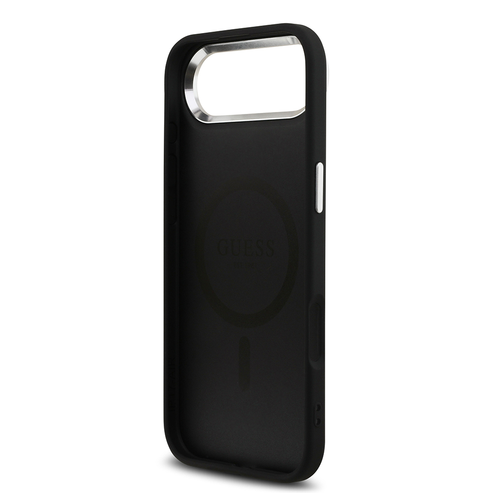 Apple iPhone 17 Air Case Guess Original Licensed M-safe Charging Feature Silver Metal Camera Frame Triangle Logo 4G Patterned Cover - 16