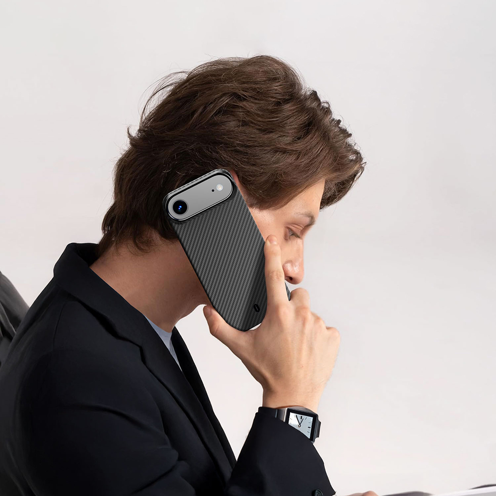 iPhone 17 Air Kılıf Wiwu DCC-206 Magsafe Şarj Özellikli Kamera Standlı Aramid Fiber Tasarım Kevlar Kapak