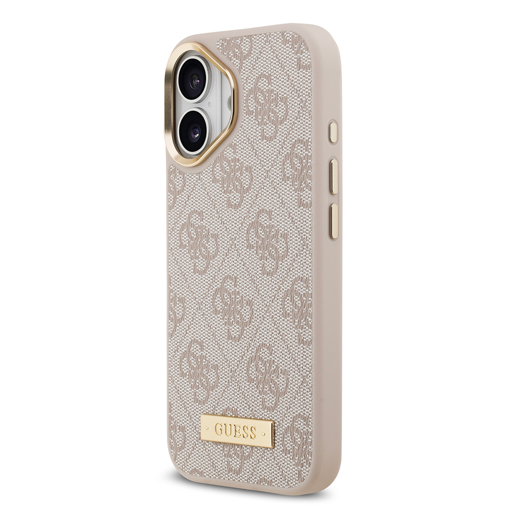 iPhone 17 Kılıf Guess Orjinal Lisanslı M-safe Şarj Özellikli 4G Desenli PU Metal Plaka Klasik Logolu Kapak