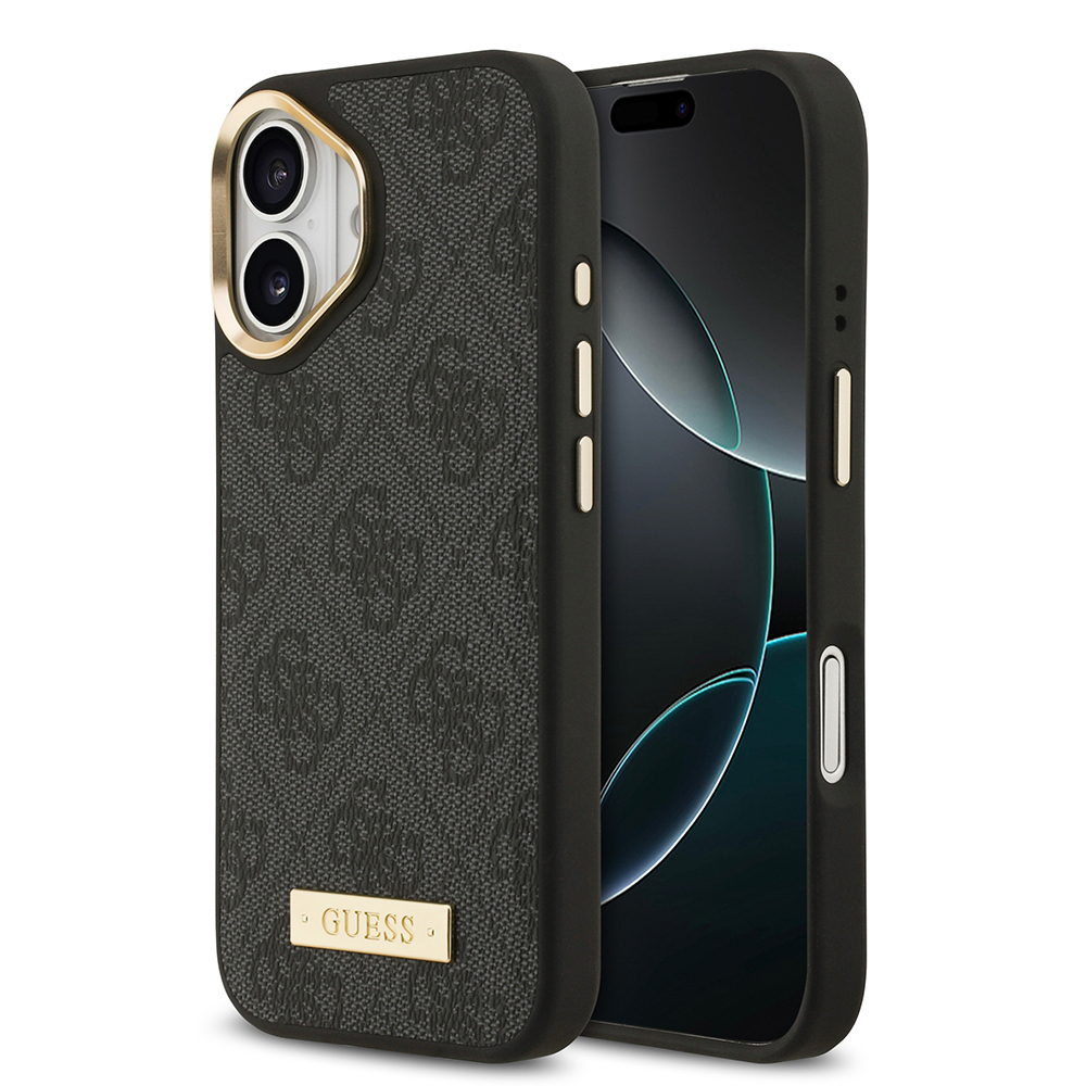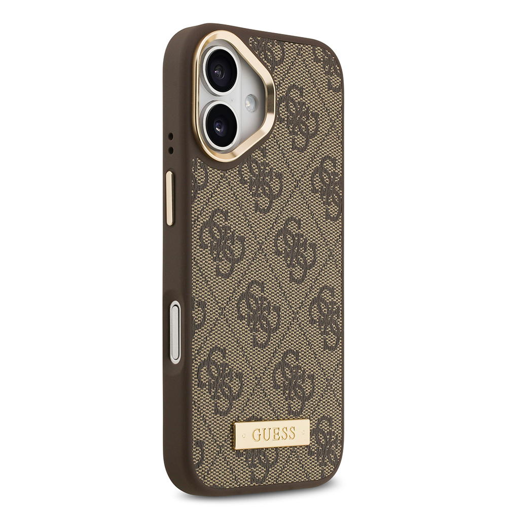 Apple iPhone 17 Case Guess Original Licensed M-safe Charging Feature 4G Patterned PU Metal Plate Classic Logo Cover - 17
