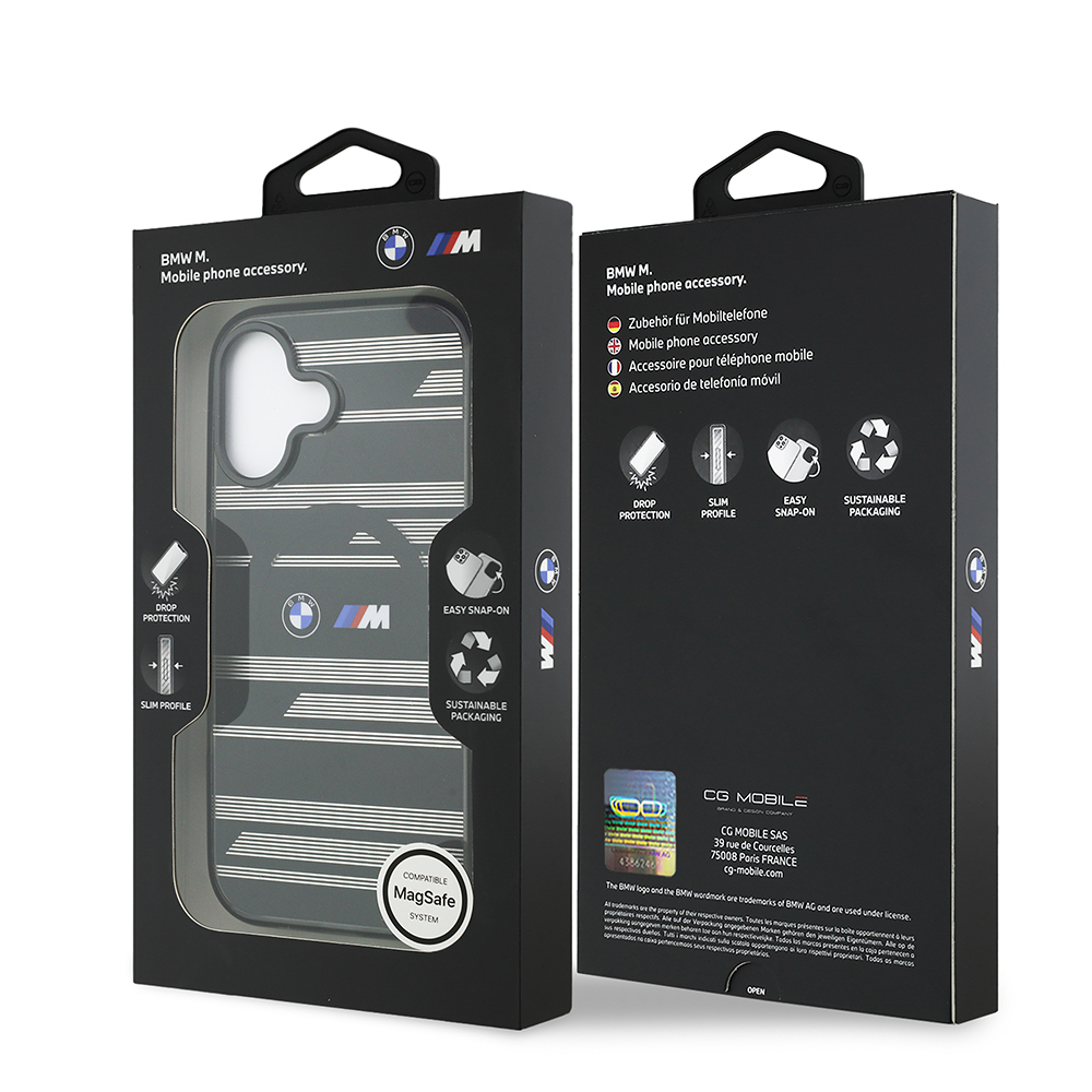 Apple iPhone 17 Kılıf BMW Orjinal Lisanslı M-safe Şarj Özellikli Metal Kamera Butonlu Yatay Şeritli M Dizayn Kapak - 1
