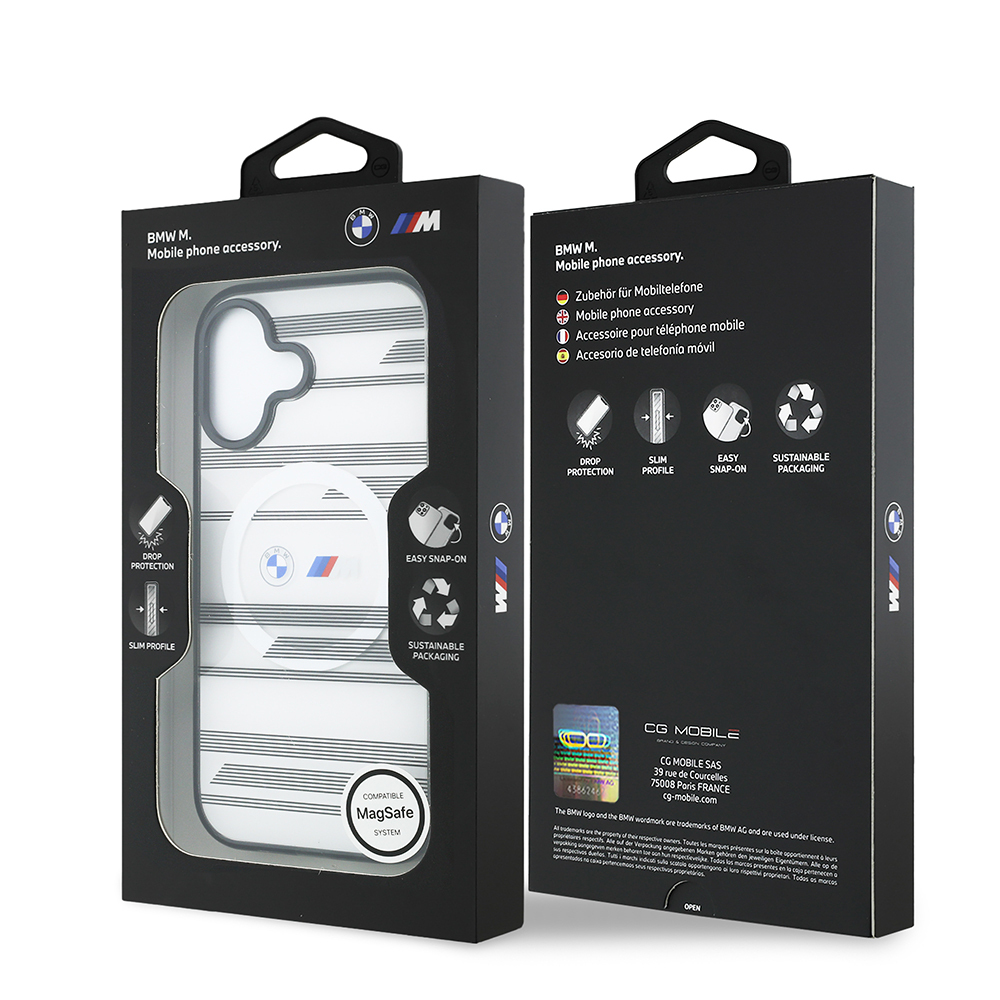 Apple iPhone 17 Kılıf BMW Orjinal Lisanslı M-safe Şarj Özellikli Metal Kamera Butonlu Yatay Şeritli M Dizayn Kapak - 17