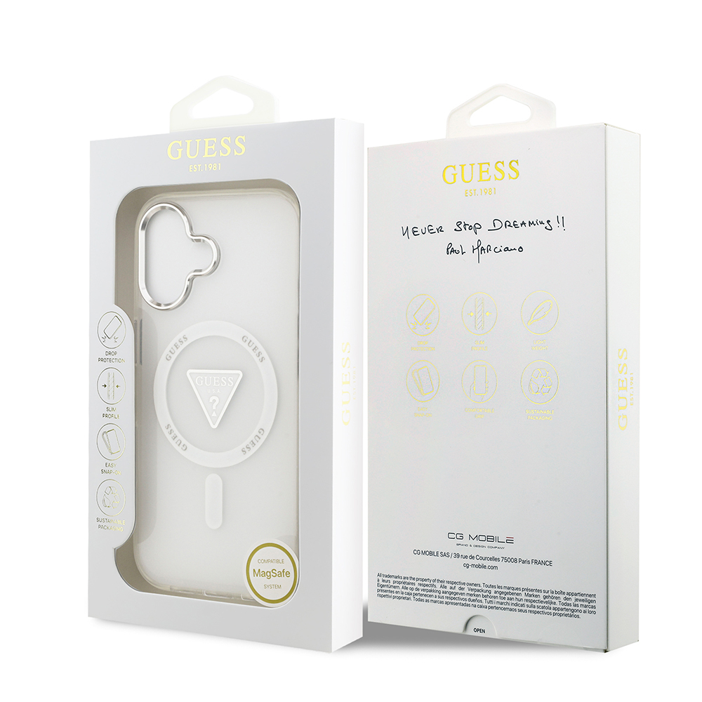 Apple iPhone 17 Kılıf Guess Orjinal Lisanslı M-safe Şarj Özellikli IML Baskılı Üçgen Logolu Metal Kamera Çerçeveli Kapak