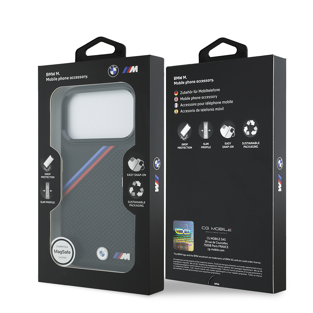 Apple iPhone 17 Pro Case BMW Original Licensed M-Safe Charging Feature M Logo Three Stripe Perforated Leather Cover