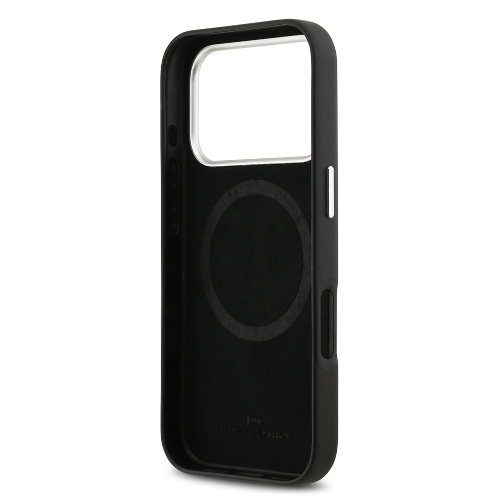 Apple iPhone 17 Pro Case BMW Original Licensed M-Safe Charging Feature Metal Logo Full Cover Leather Cover - 17