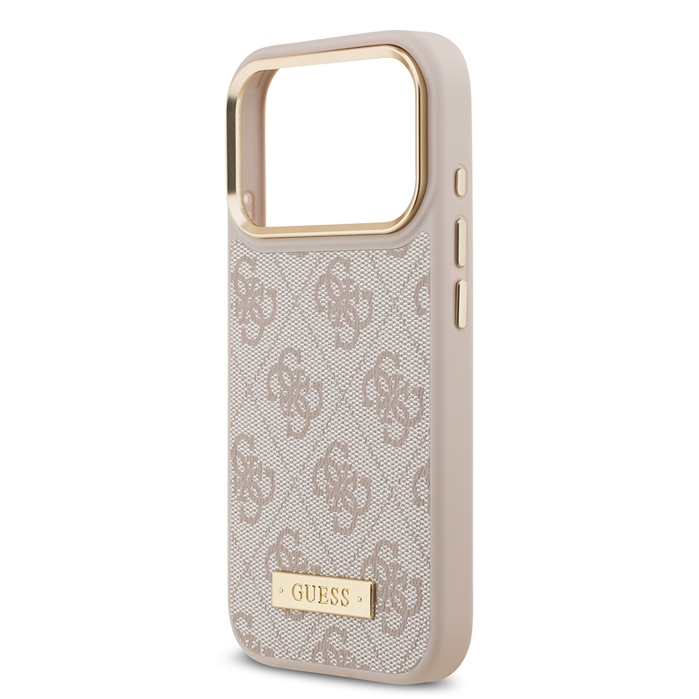 iPhone 17 Pro Kılıf Guess Orjinal Lisanslı M-safe Şarj Özellikli 4G Desenli PU Metal Plaka Klasik Logolu Kapak