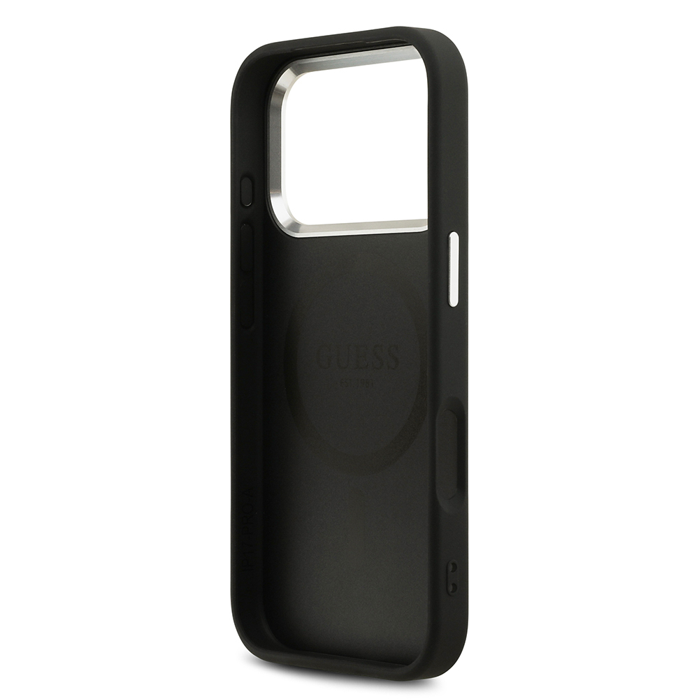 iPhone 17 Pro Kılıf Guess Orjinal Lisanslı M-safe Şarj Özellikli Sıcak Baskılı Klasik Yazı Logolu PU Deri Peony Kapak