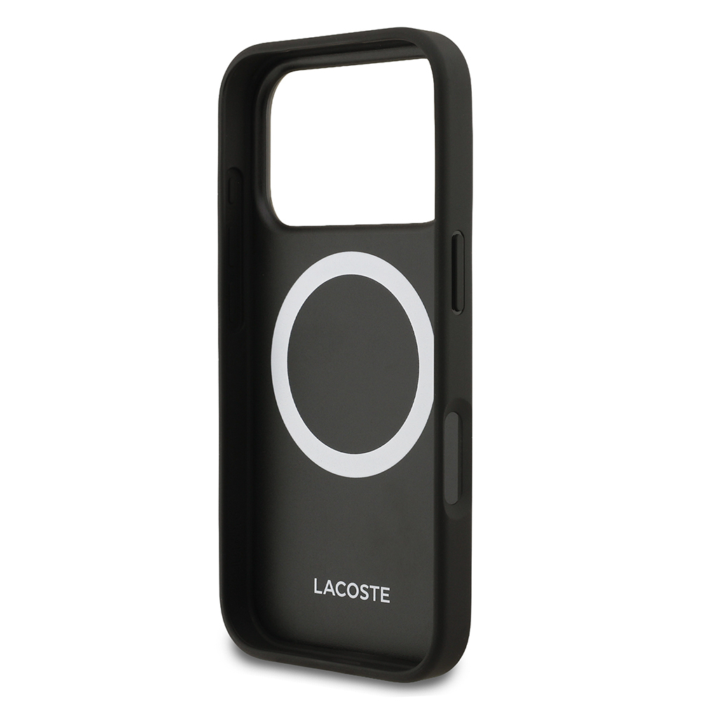 Apple iPhone 17 Pro Case Lacoste Original Licensed M-Safe Charging Feature PU Pique Pattern Metal Logo Card Holder Cover - 10