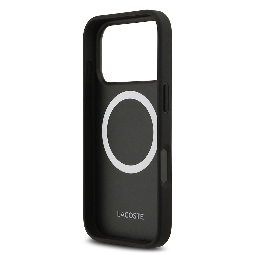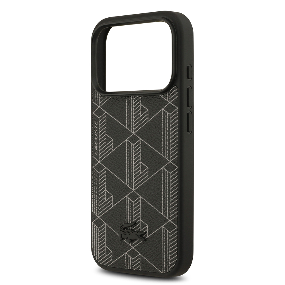 Apple iPhone 17 Pro Case Lacoste Original Licensed M-Safe Charging Function PU Leather Design Card Holder Mixed Monogram Pattern Cover