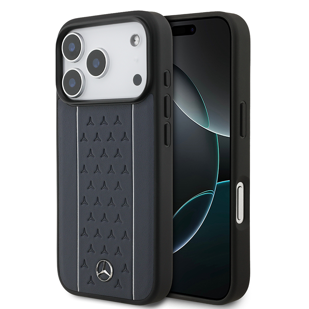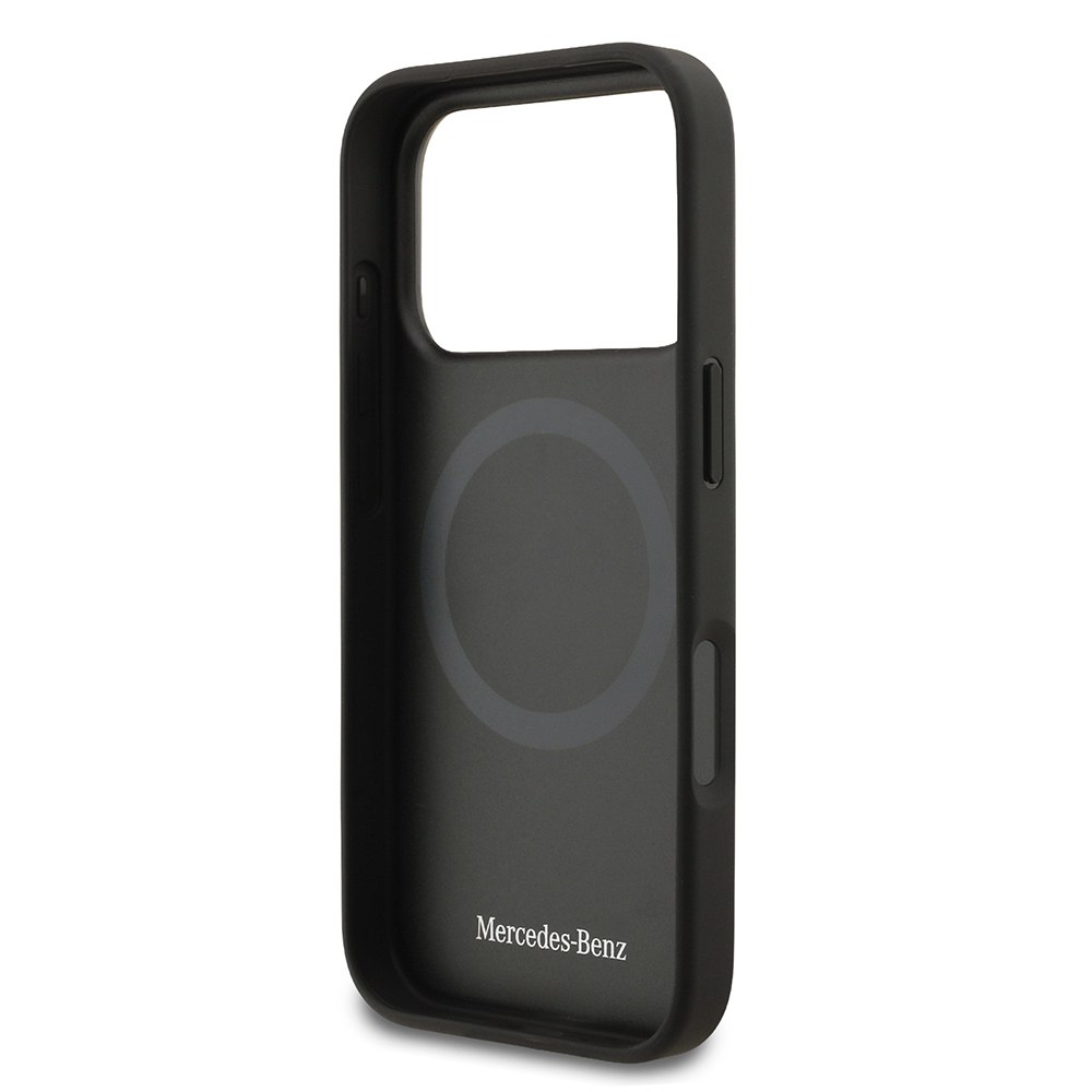 iPhone 17 Pro Kılıf Mercedes Benz Orjinal Lisanslı M-safe Şarj Özellikli Şeritli Yıldız Desenli Metal Logolu Deri Kapak