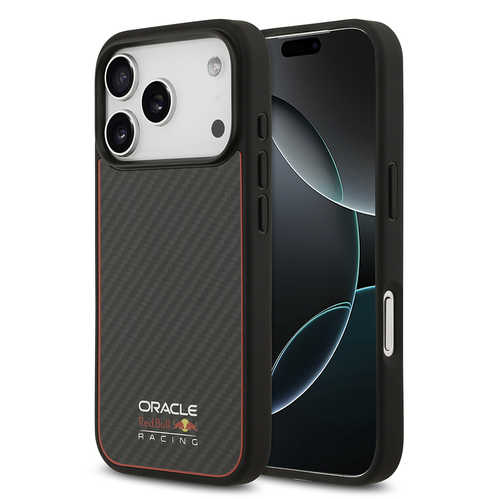 Apple iPhone 17 Pro Case Redbull Original Licensed M-safe Charging Enabled Carbon Fiber Cover with Glowing Logo