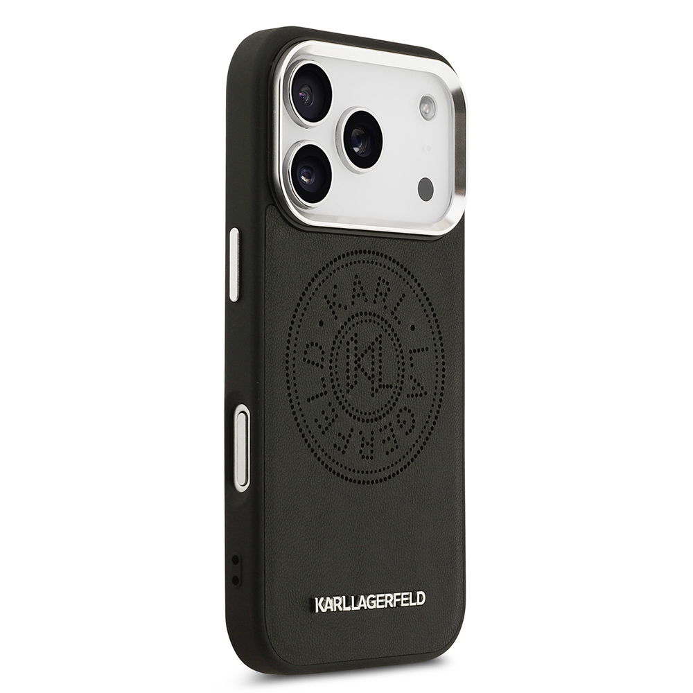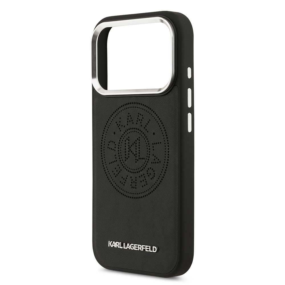 Apple iPhone 17 Pro Kılıf Karl Lagerfeld Orjinal Lisanslı M-safe Şarj Özellikli Delikli Tasarım Metal Logolu PU Deri Kapak - 1