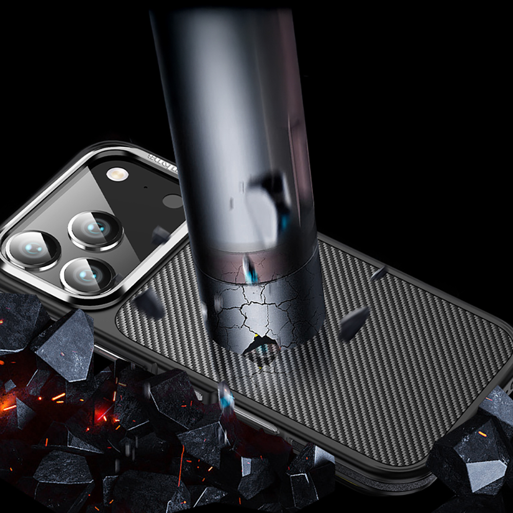 Apple iPhone 17 Pro Max Kılıf Magsafe Şarj Özellikli Karbon Fiber Görünümlü Wlons Marin Kapak