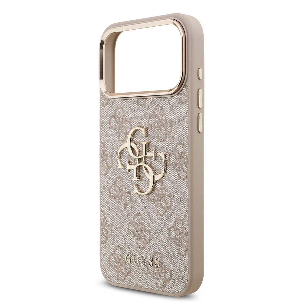 iPhone 17 Pro Max Kılıf Guess Orjinal Lisanslı Gold Metal Kamera Çerçeveli 4G Desenli Metal Büyük 4G ve Yazı Logolu Kapak