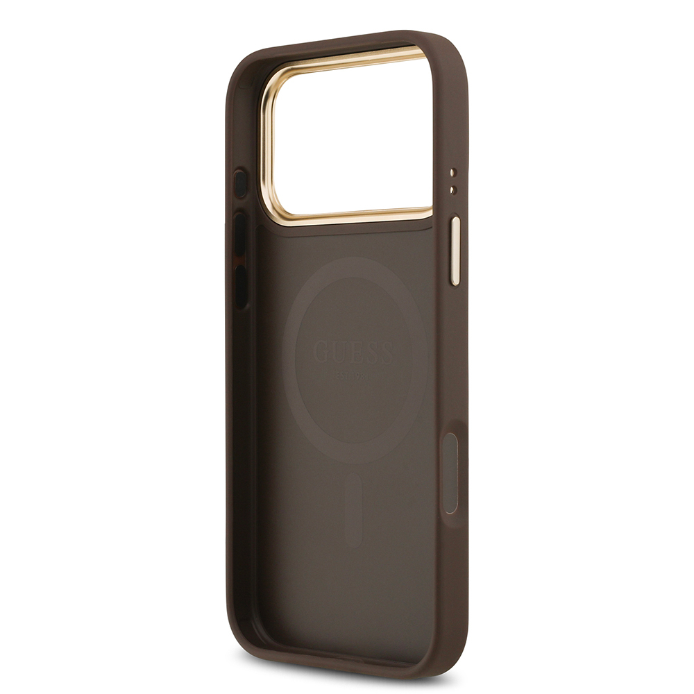 Apple iPhone 17 Pro Max Case Guess Original Licensed M-safe Charging Feature Hot Printed Text Logo PU Leather Peony Cover - 6