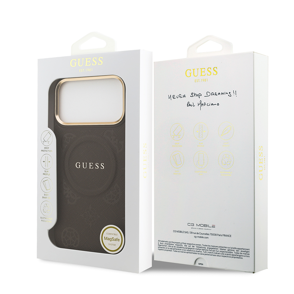 Apple iPhone 17 Pro Max Case Guess Original Licensed M-safe Charging Feature Hot Printed Text Logo PU Leather Peony Cover