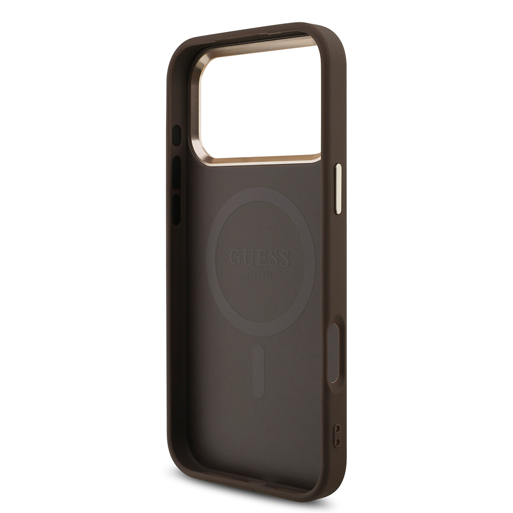 Apple iPhone 17 Pro Max Case Guess Original Licensed M-safe Charging Feature Stone Triangle Logo 4G Patterned Cover