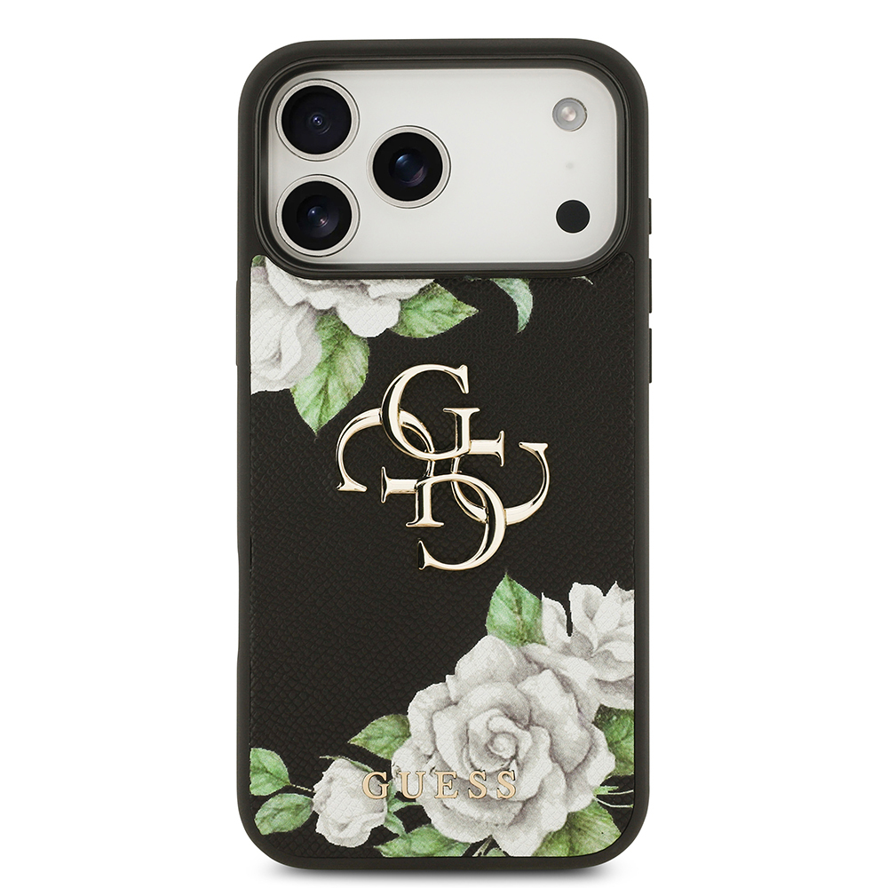 iPhone 17 Pro Max Kılıf Guess Orjinal Lisanslı Gül Baskılı Büyük Metal Logo Dizaynlı Kapak