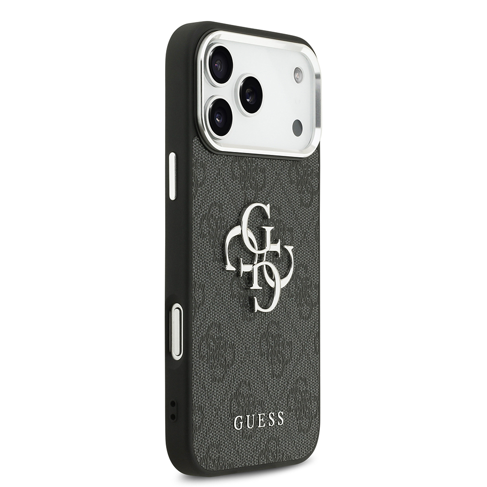 Apple iPhone 17 Pro Max Case Guess Original Licensed Silver Metal Camera Frame 4G Patterned Metal Big 4G and Text Logo Cover - 1