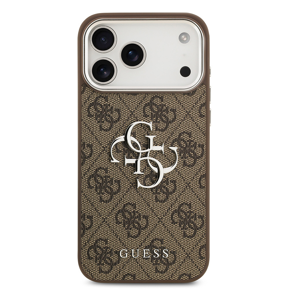 Apple iPhone 17 Pro Max Case Guess Original Licensed Silver Metal Camera Frame 4G Patterned Metal Big 4G and Text Logo Cover