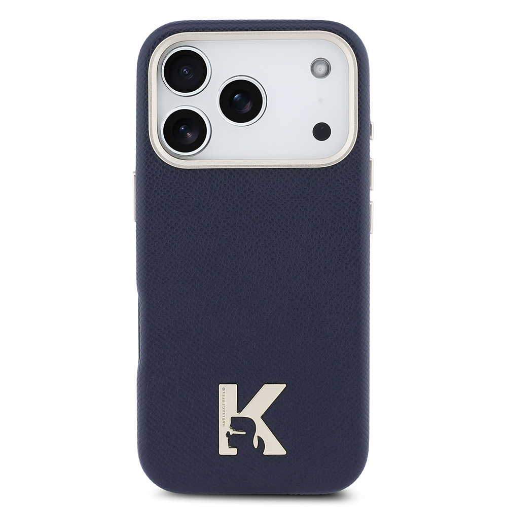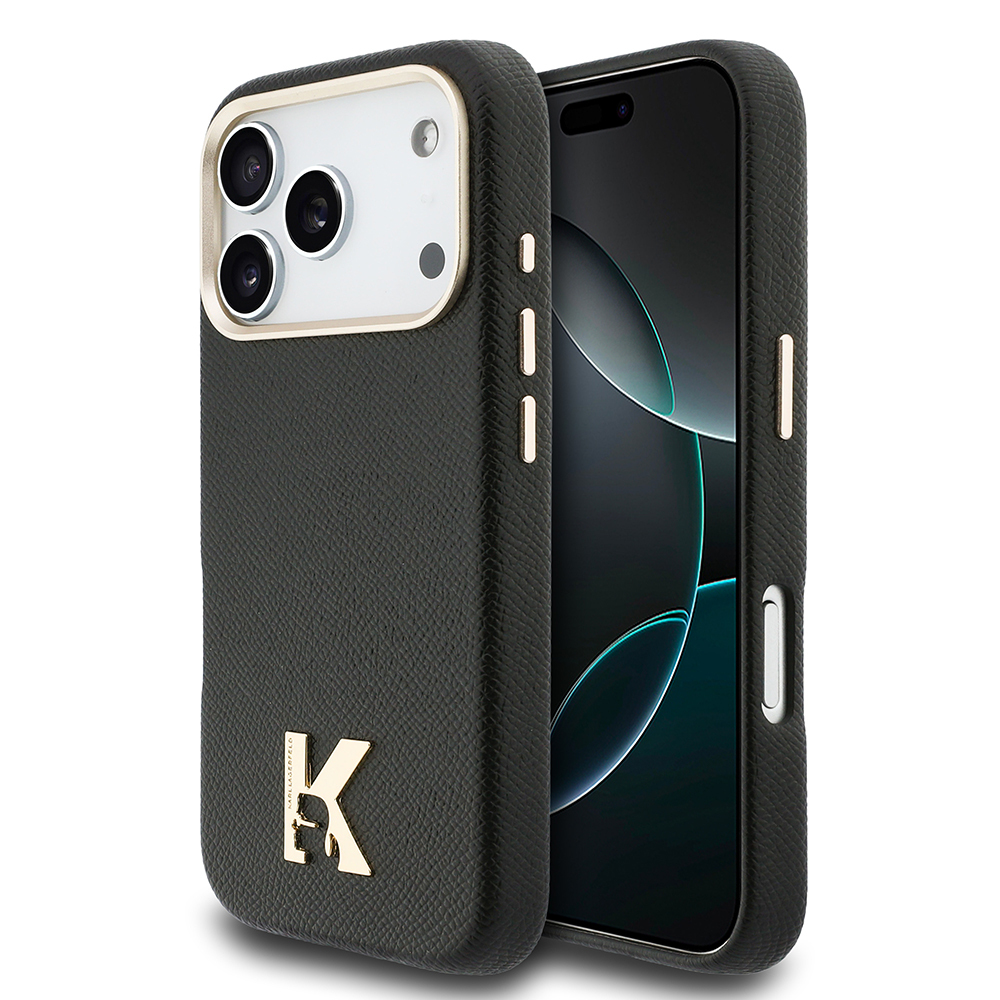 Apple iPhone 17 Pro Max Case Karl Lagerfeld Original Licensed M-safe Charging Enabled Gold Camera Frame KHEAD Metal Logo PU Leather Cover