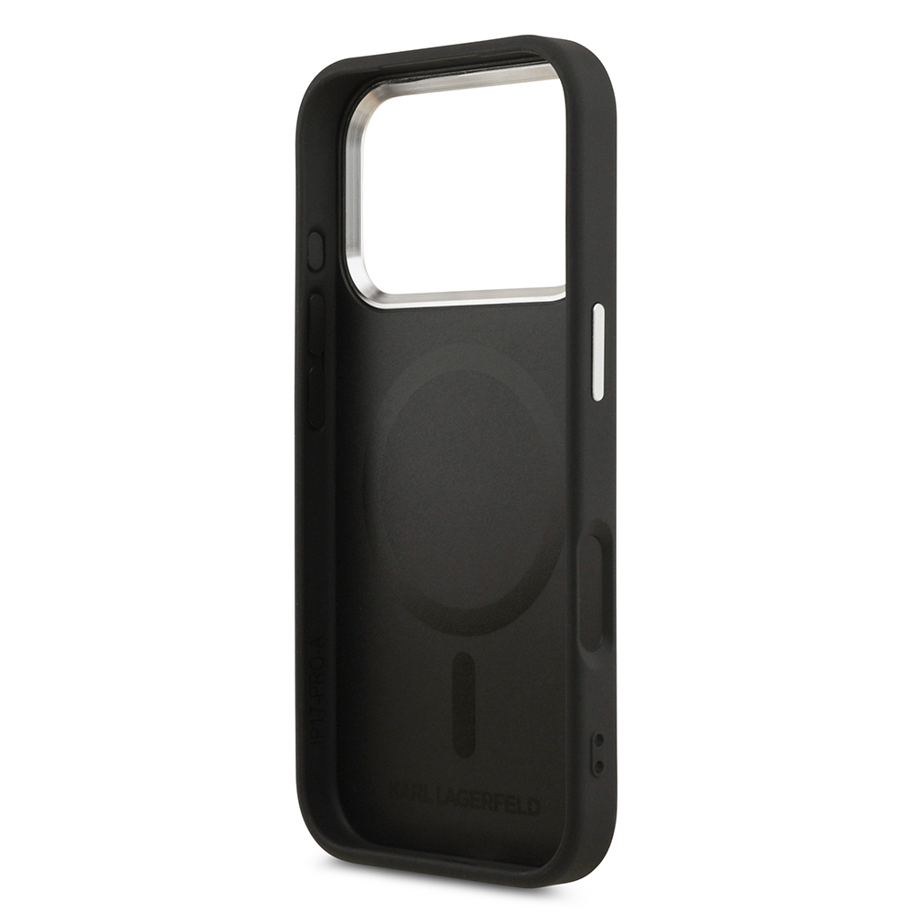 Apple iPhone 17 Pro Max Case Karl Lagerfeld Original Licensed M-safe Charging Feature Perforated Design Metal Logo PU Leather Cover - 3