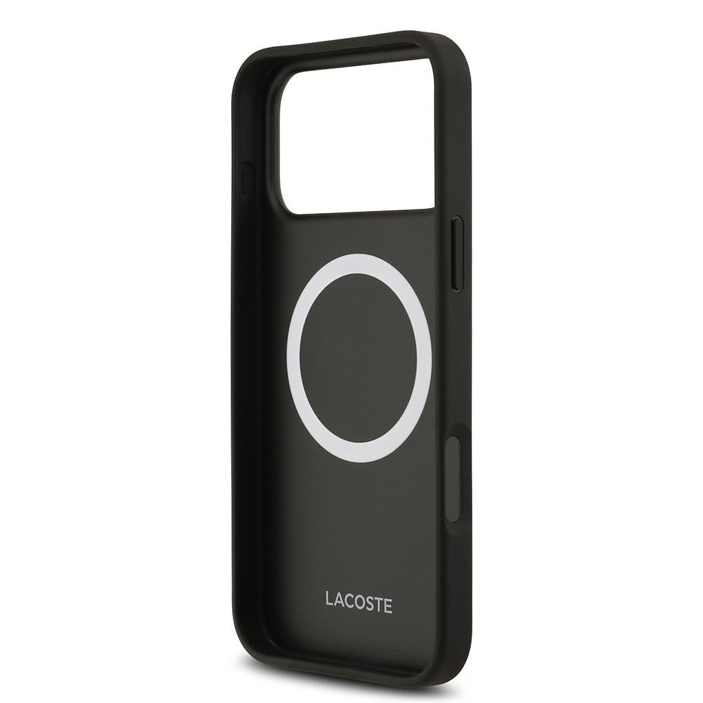 Apple iPhone 17 Pro Max Case Lacoste Original Licensed M-Safe Charging Function PU Leather Design Card Holder Mixed Monogram Pattern Cover
