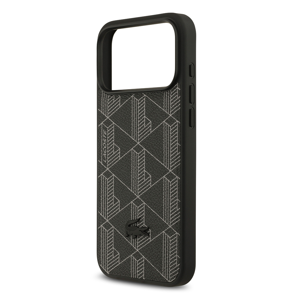 Apple iPhone 17 Pro Max Case Lacoste Original Licensed M-Safe Charging Function PU Leather Design Card Holder Mixed Monogram Pattern Cover - 1