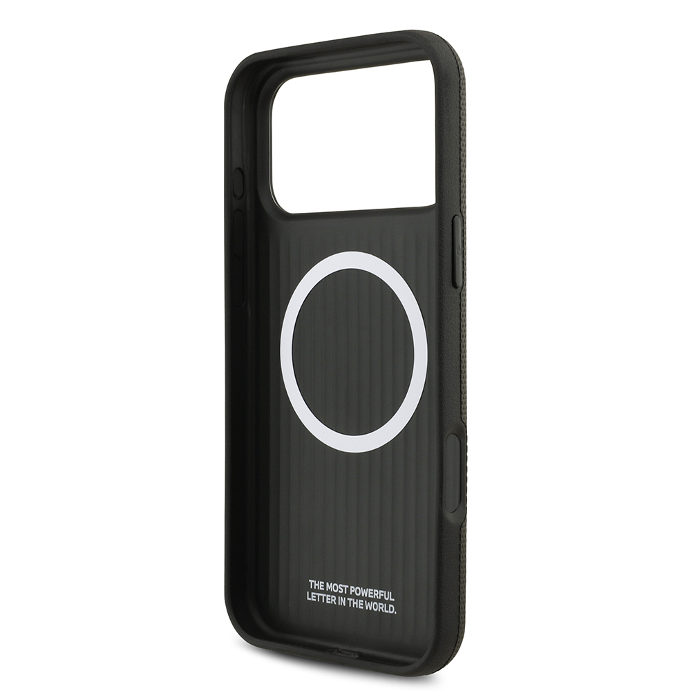 Apple iPhone 17 Pro Max Case BMW Original Licensed M-Safe Charging Feature Metal Logo Perforated M Design Leather Cover - 17
