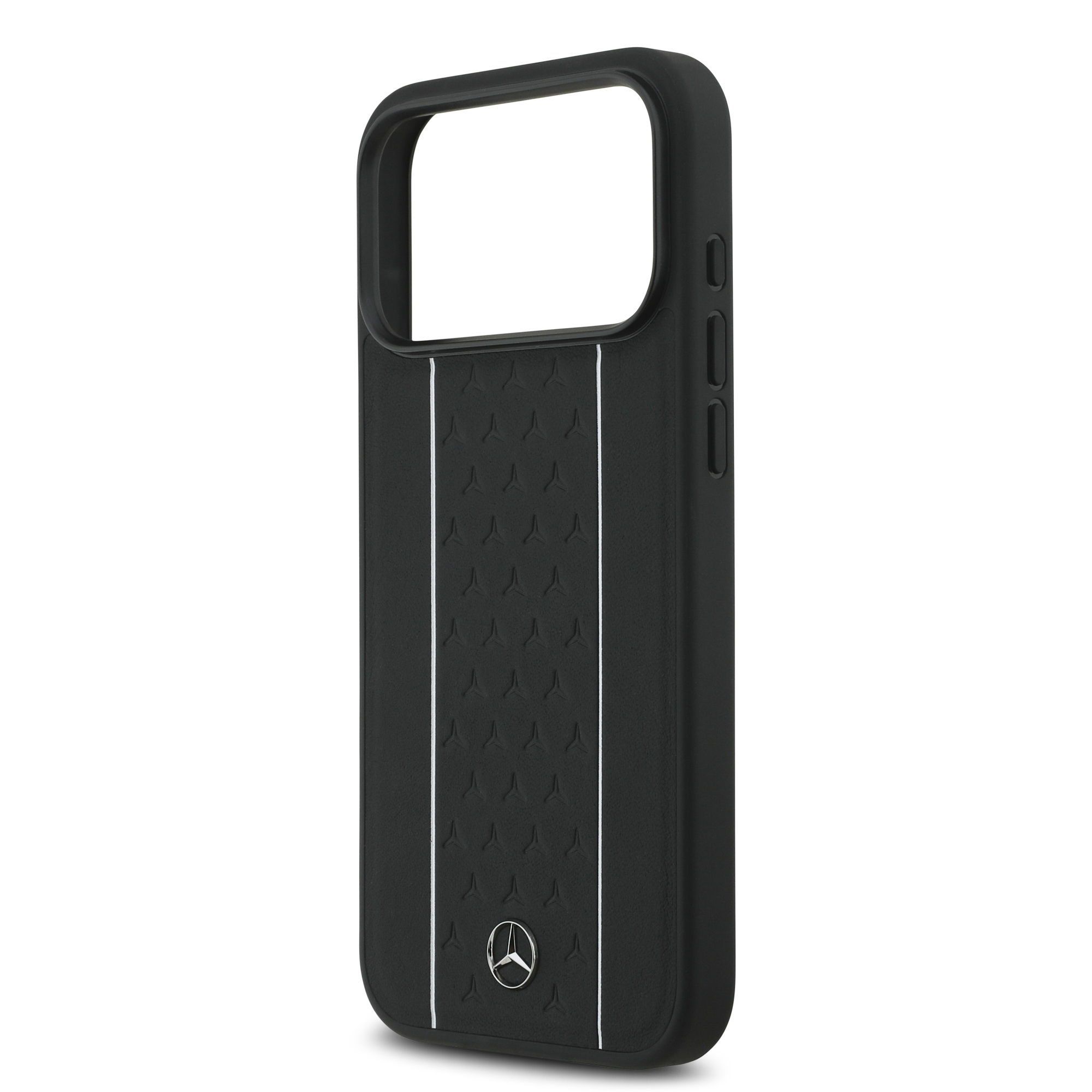 Apple iPhone 17 Pro Max Kılıf Mercedes Benz Orjinal Lisanslı M-safe Şarj Özellikli Şeritli Yıldız Desenli Metal Logolu Deri Kapak - 1