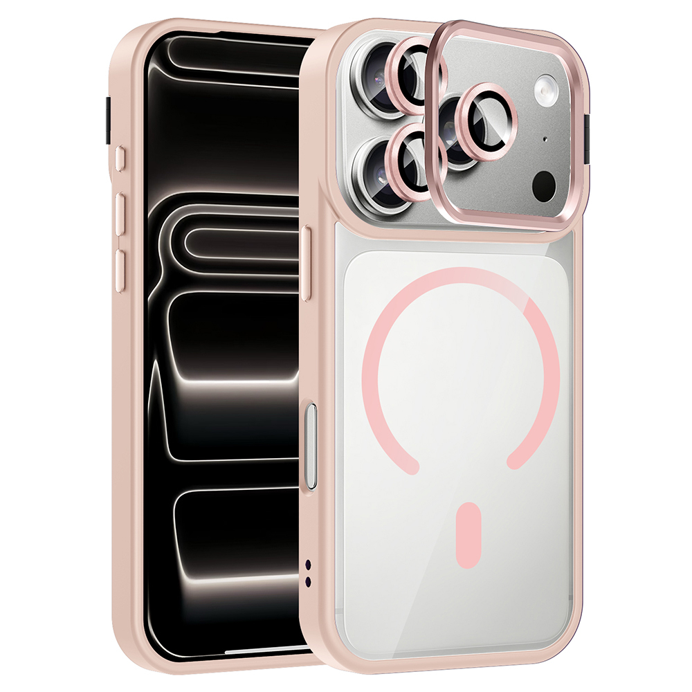 iPhone 17 Pro Max Kılıf Standlı ve Kamera Lens Hediyeli M-Safe Şarj Özellikli Zore Etro Kapak