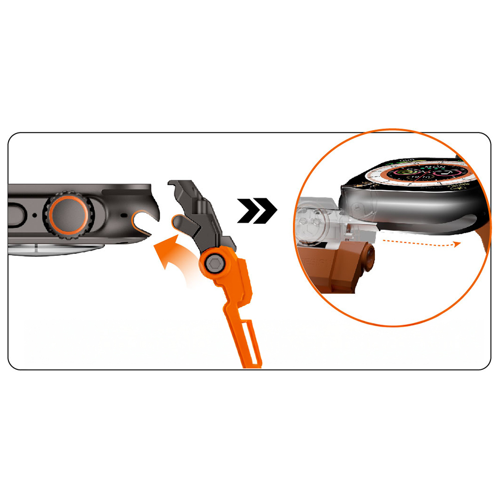Akıllı saatinizle tam uyumlu tasarlanan bu model, kolay takılıp çıkarılabilen özel bağlantı yapısına sahiptir. Orta kilit mekanizmasını açarak kordonu yerleştirmeniz ve yatay hizalayarak slot kısmına oturtmanız yeterlidir. Evde hızlı bir değişim yapmak istediğinizde birkaç saniye içinde dönüşüm sağlayabilirsiniz. Spor kombinlerle enerjik bir görünüm, günlük kombinlerle ise dikkat çekici bir stil sunar. Hem aktif yaşam tarzına sahip kullanıcılar hem de güçlü tasarım sevenler için etkileyici bir tamamlayıcıdır.