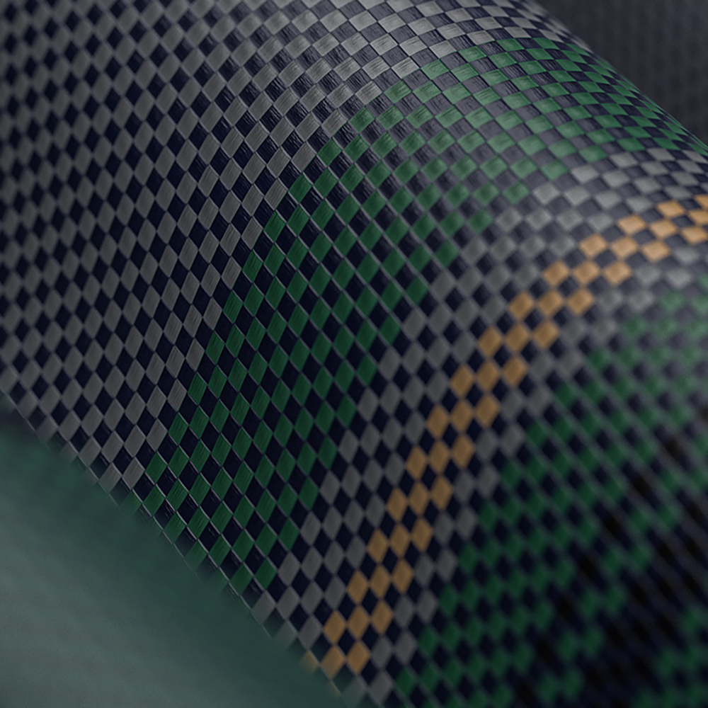 Aurora, klasik estetiğini ince kevlar lifleri ve değişken desenlerle birleştirerek yeni bir dokuma düzeni oluşturur.