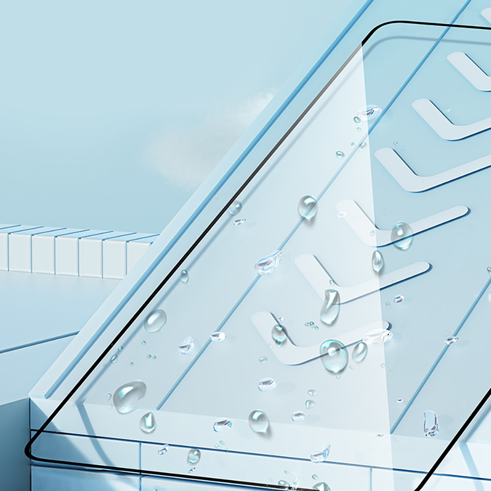 Hidrofobik ve oleofobik kaplama, ekranınızı su, yağ ve parmak izlerine karşı koruyarak temiz bir ekran deneyimi sunar. Çok katmanlı koruma yapısı sayesinde günlük kullanımdaki aşınmalara ve darbelere karşı üst düzey dayanıklılık sağlar.