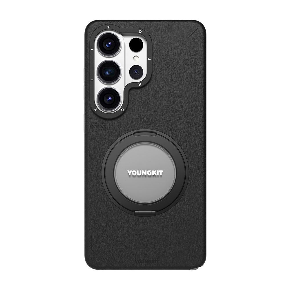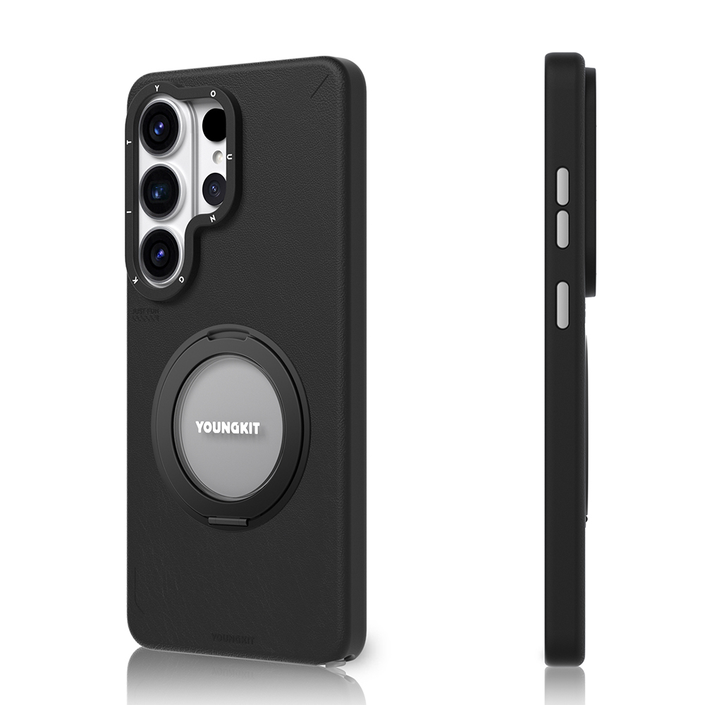 Galaxy S26 Ultra Kılıf Magsafe Şarj Özellikli 360° Standlı Basit Mat Deri Desenli Youngkit Tech Leather Serisi Kapak