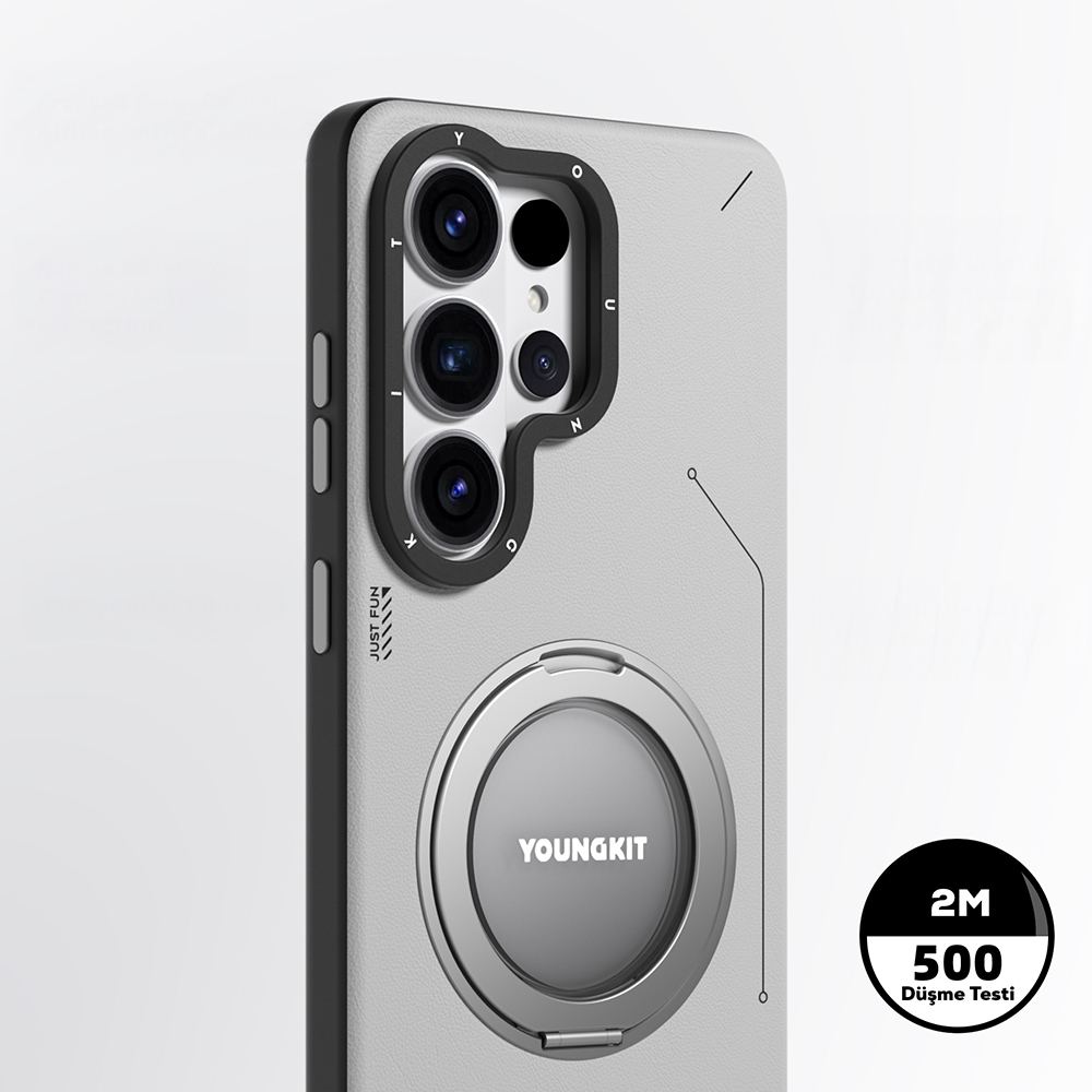 Youngkit Tech Leather Serisi, yenilikçi 360° dönebilen entegre stand özelliği ile telefonunuzu dikey veya yatay olarak kullanmanıza olanak tanır. Çalışırken, video izlerken ya da görüntülü görüşmelerde benzersiz bir rahatlık sağlar. Stand özelliğinin yanı sıra, tam temaslı koruma teknolojisi sayesinde cihazınızı her açıdan korur. Dört köşesindeki hava yastığı çerçevesi ve yükseltilmiş kenar yapısı ile kamera lenslerinizi ve ekranınızı çizilmelere karşı güvence altına alır. 500’den fazla çok açılı düşme testinden geçmiş olan bu kılıf, darbelere karşı maksimum dayanıklılık sağlar.