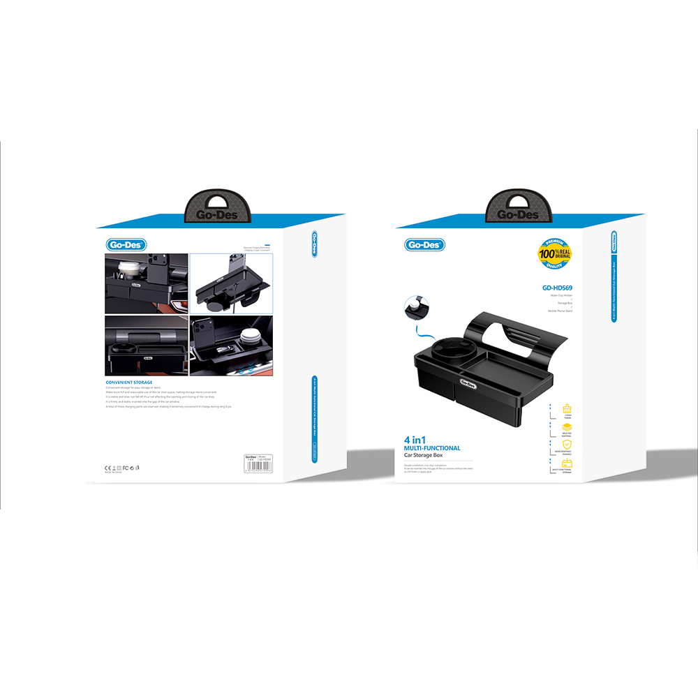 Go Des GD-HD569 4-in-1 Car Multipurpose Console with Cup Holder and Phone Compartment - 1