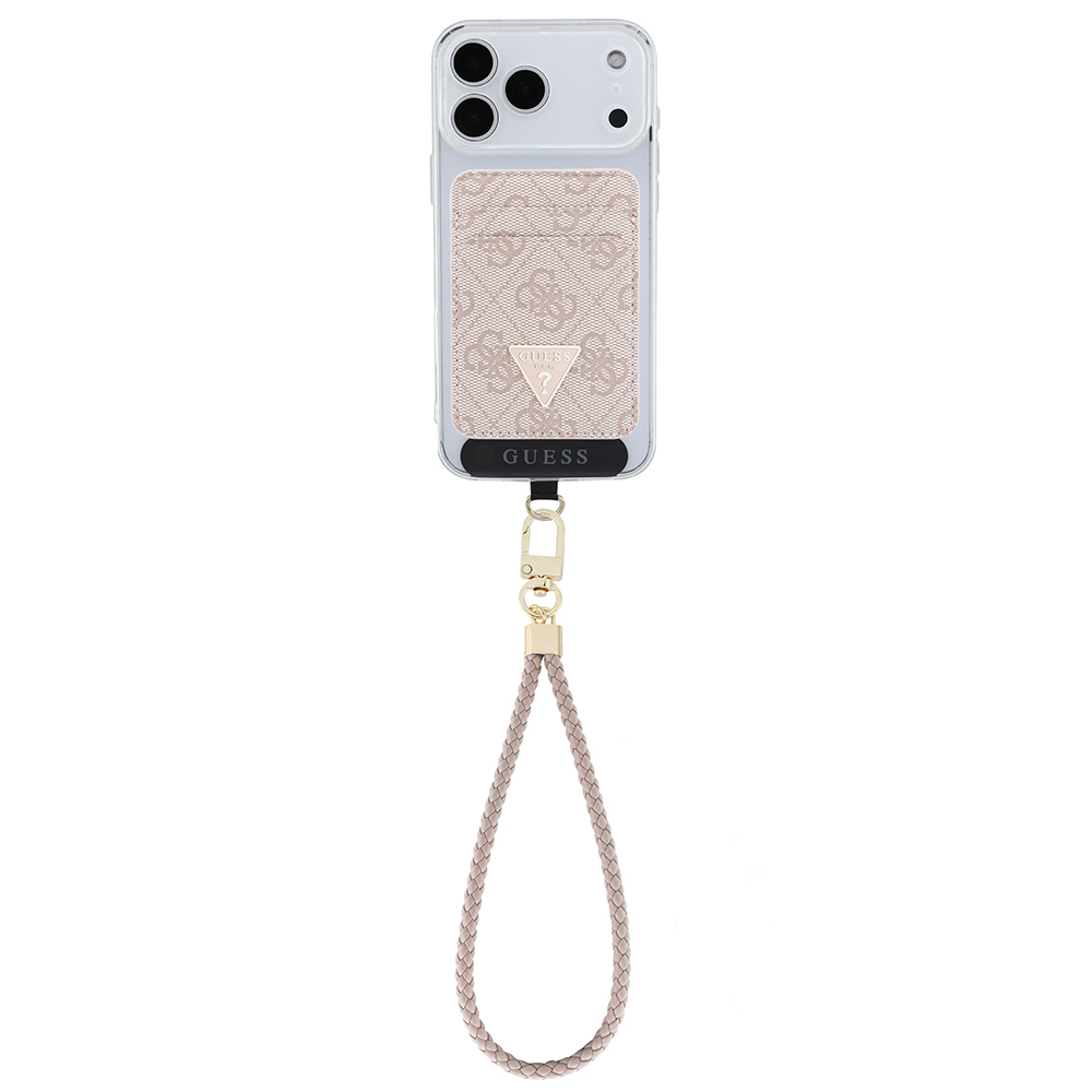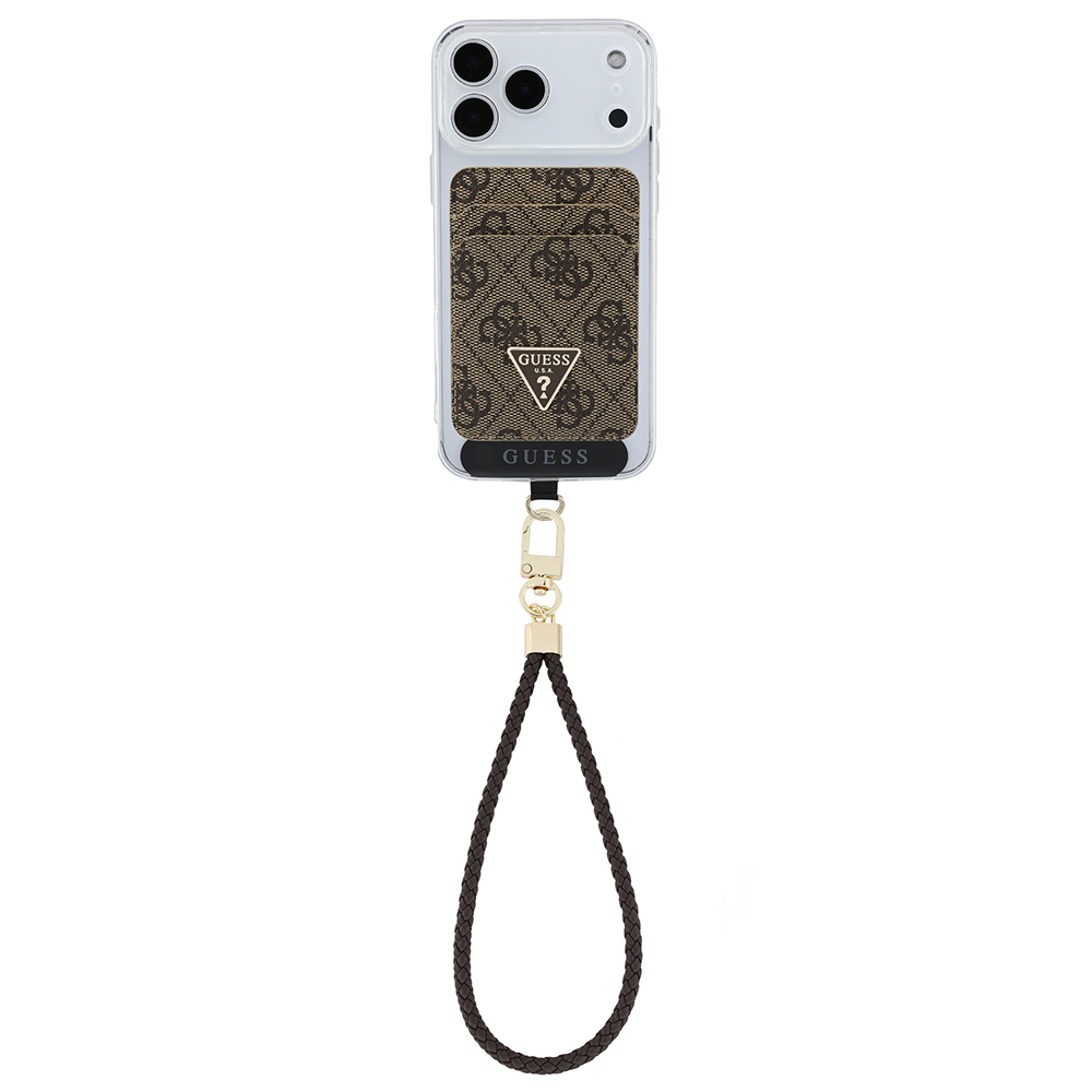 Guess Original Licensed 2-in-1 Wrist Strap Cord 4G Patterned Metal Triangle Logo Magnetic Card Holder - 4