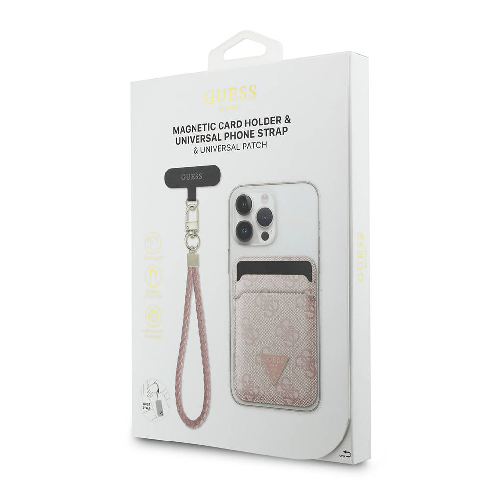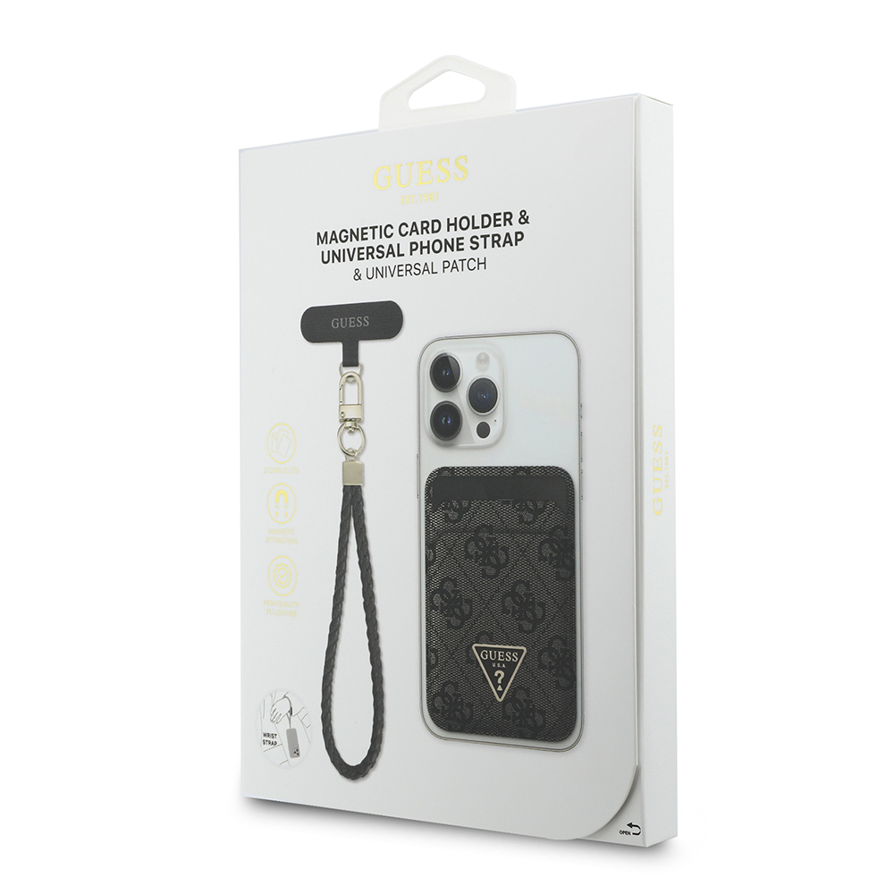 Guess Original Licensed 2-in-1 Wrist Strap Cord 4G Patterned Metal Triangle Logo Magnetic Card Holder