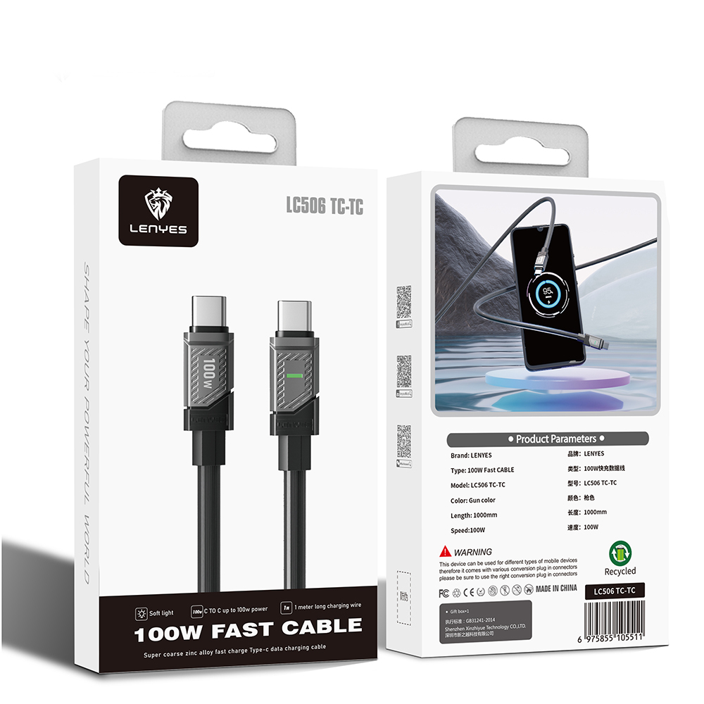Lenyes LC506 Type-C to Type-C PD 100W Fast Charging Data and Charging Cable 1M