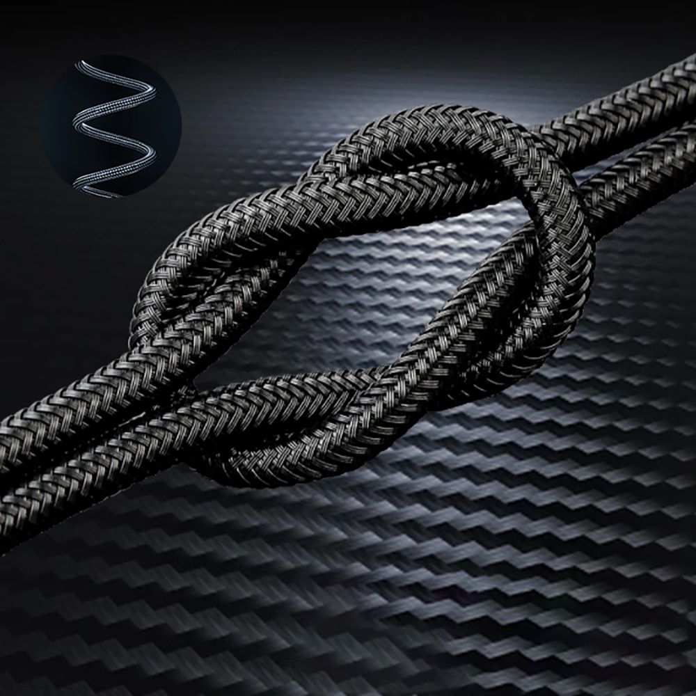 Bu kablo, uzun ömürlü kullanım için özel olarak tasarlanmıştır. Yüksek kaliteli örgü tasarımlı dış kaplaması, kablonun bükülme, çekme ve yıpranmalara karşı dayanıklılığını artırır. 30 kg'a kadar ağırlık kaldırma gücüne sahip olduğu test edilmiştir. Dolaşmayan yapısı sayesinde, cebinizde veya çantanızda kolayca taşınabilir.