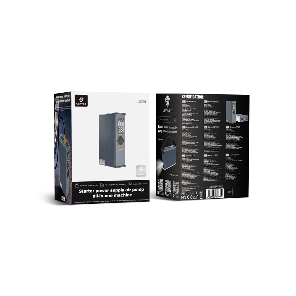 Lenyes LCI205 LED Işıklı Araç Akü Acil Durum Takviye Güç Kaynağı ve Hava Kompresörü 12V 100W 7200mAh
