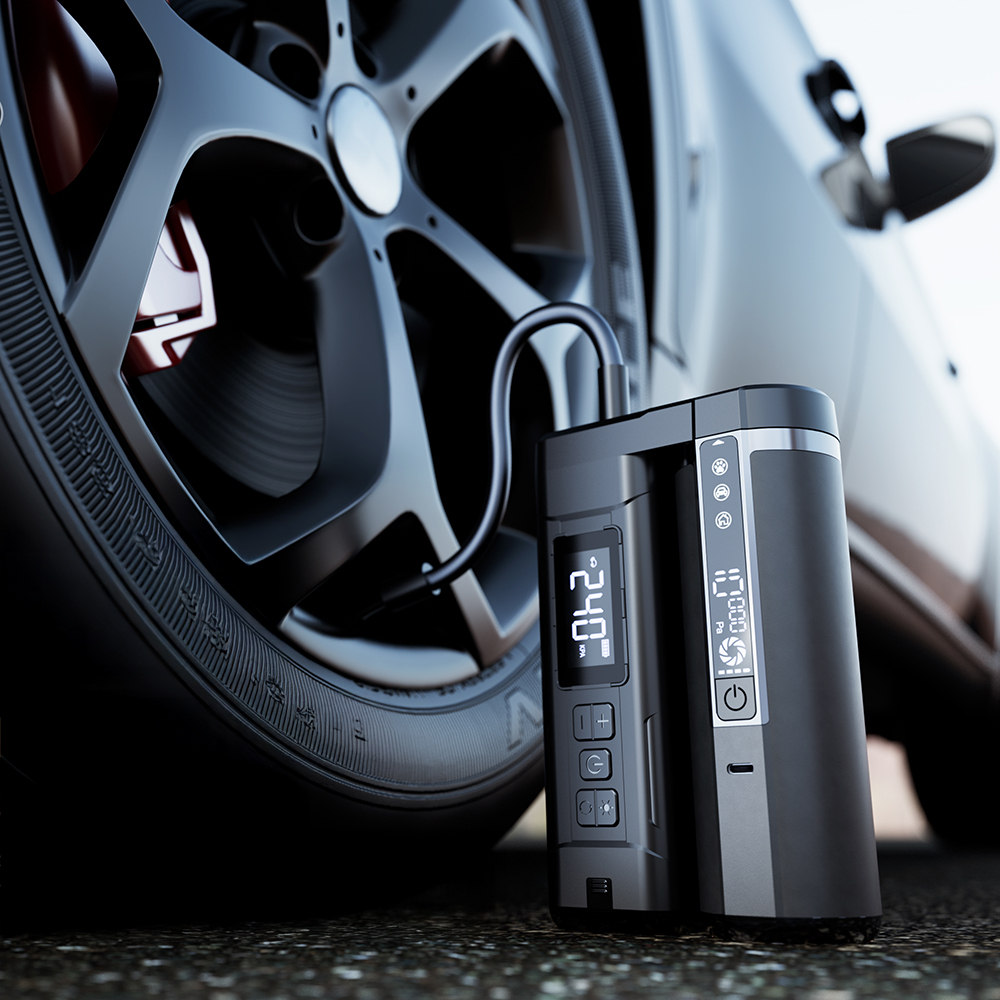 6000mAh yüksek kapasiteli lityum polimer batarya ile kablosuz kullanım özgürlüğü sağlar. Yaklaşık 3,5 saatlik şarj süresi sonrası uzun süreli performans sunar. Alüminyum alaşım + ABS + PC malzeme kombinasyonu hem dayanıklılık hem hafiflik sağlar. Avuç içi boyutundaki kompakt tasarımı sayesinde torpido gözünde, kol dayamada veya bagajda rahatlıkla saklanabilir. Entegre dijital ekran sayesinde basınç ve çalışma modu anlık olarak takip edilebilir.