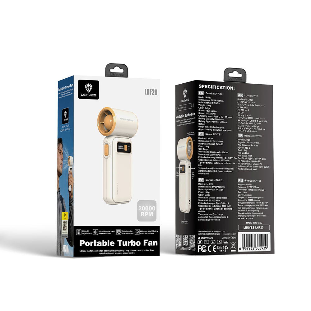 Lenyes LHF20 Dijital LED Göstergeli Yüksek Hızlı Portatif Soğutucu El Fanı