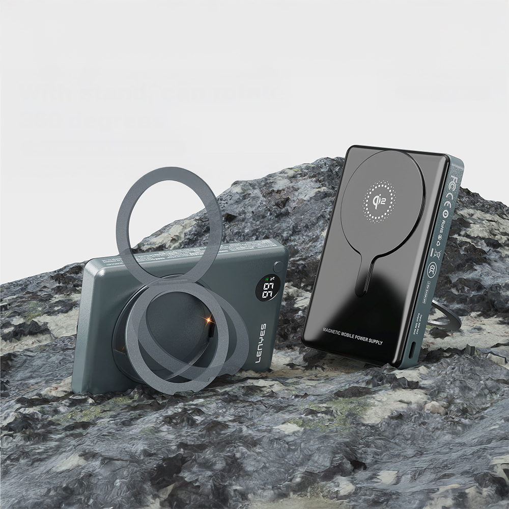 Lenyes PW1013D PD 30W Dijital LED Göstergeli Qi2 Teknolojili Standlı Kablosuz Şarj Özellikli Wireless Powerbank 15W 10000mAh