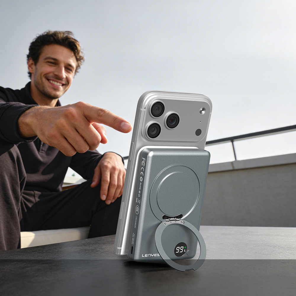 Lenyes PW1013D PD 30W Dijital LED Göstergeli Qi2 Teknolojili Standlı Kablosuz Şarj Özellikli Wireless Powerbank 15W 10000mAh